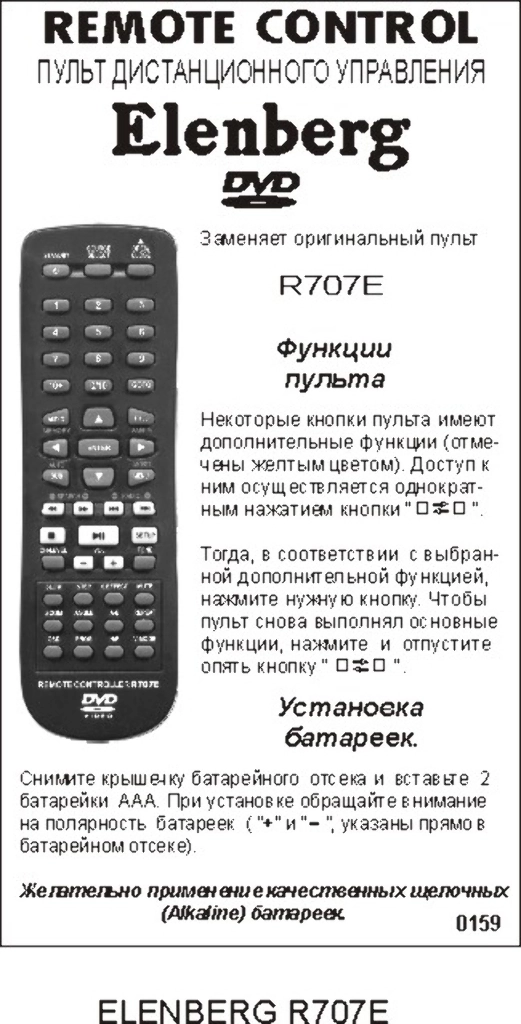 Пульт Elenberg R-301E для DVD плеера Elenberg