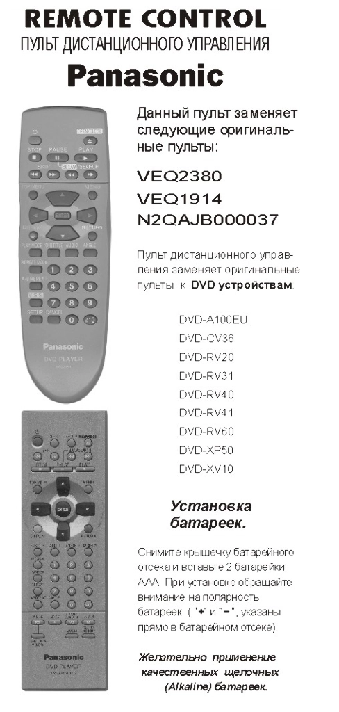 Пульт Panasonic N2QAJB000061, N2QAJB000062 для DVD плеера Panasonic