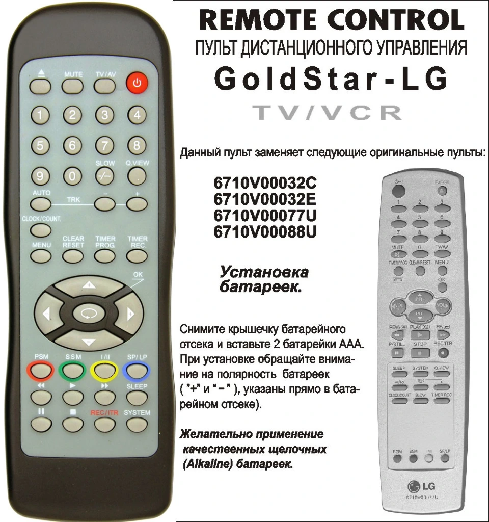 Пульт Huayu 6710V00077U для TV+VCR LG
