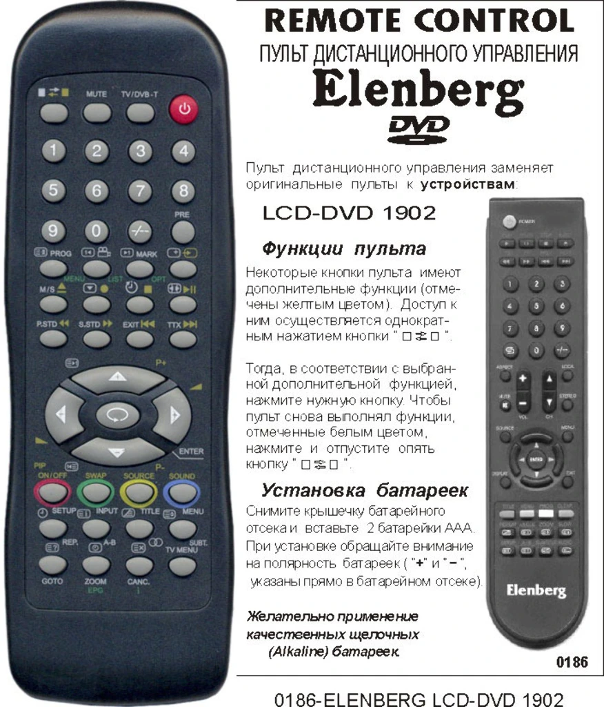 Аналог пульта Elenberg LCD-DVD 1902 для TV+DVD