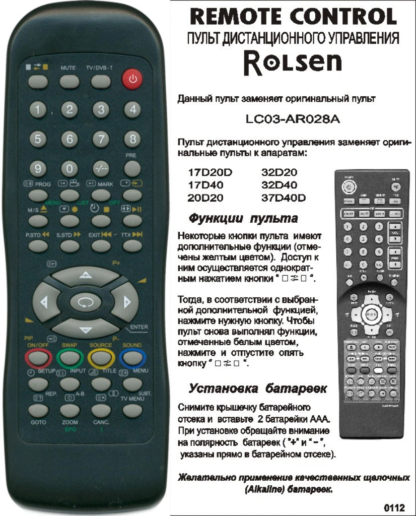 Пульт Rolsen RC1153012 (RC1153038) Rolsen