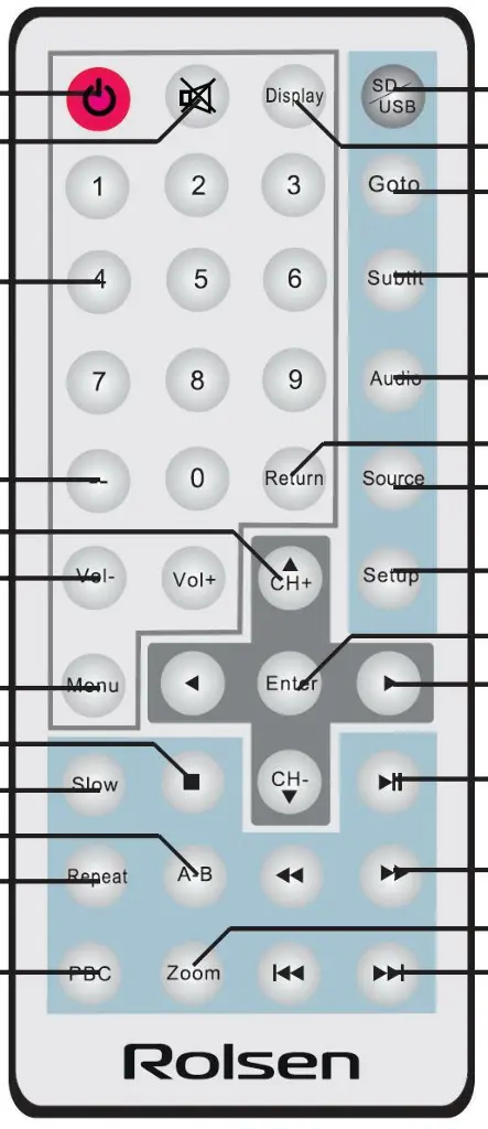 Пульт Rolsen RDB-301, RDB-302, RDB-303 для DVD плеера Rolsen