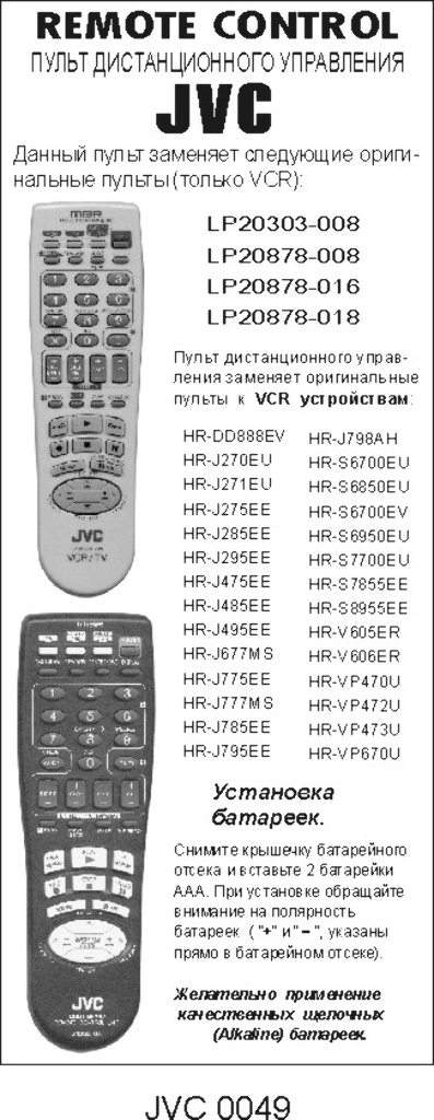 Пульт JVC PQ21953 TV,VCR orig оригинальный
