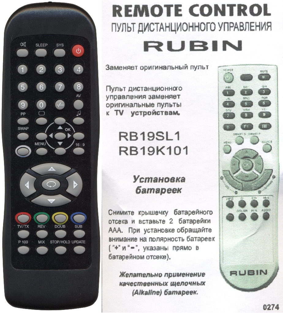 Пульт Rubin (Рубин) RB-19SE5 черн. оригинальный