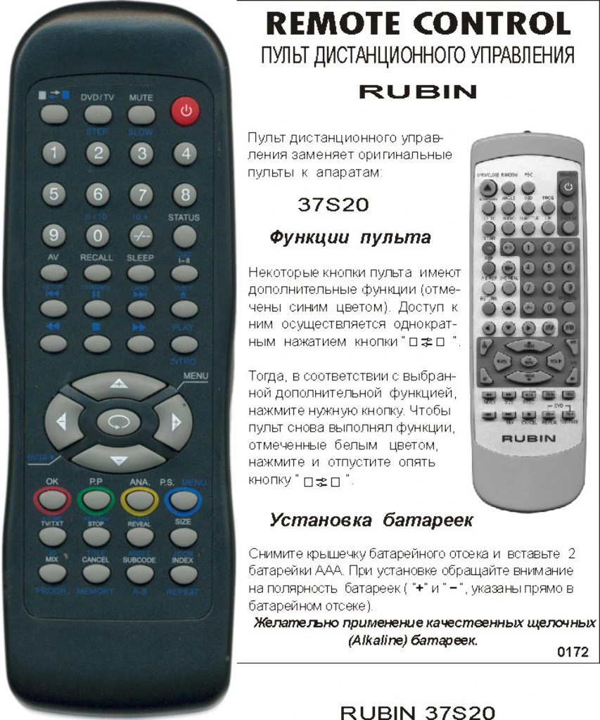 Аналог пульта Rubin (Рубин) TV+DVD 37S20 bol для TV+DVD