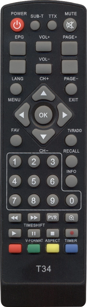 Пульт Huayu WV T34 для DVB-T2 ресивера