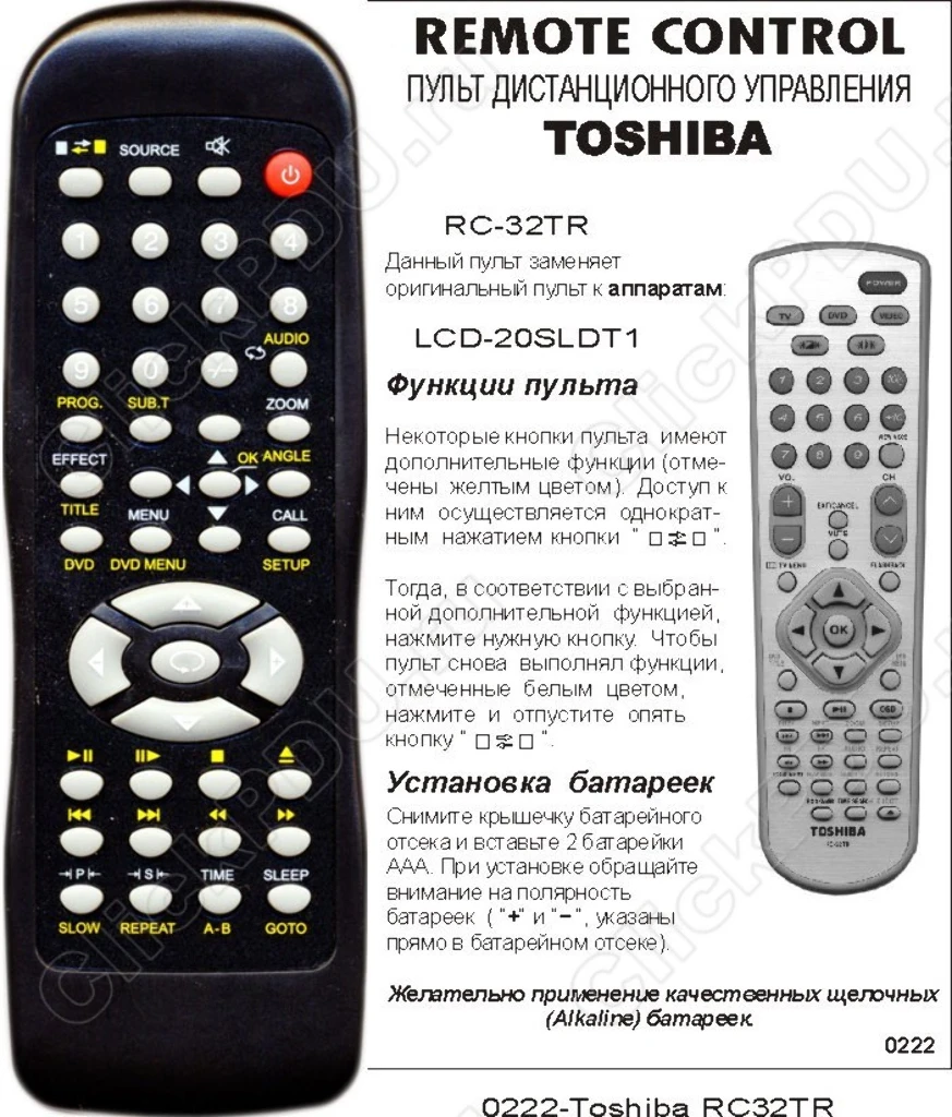 Пульт Toshiba RC-32TR TV-DVD оригинальный