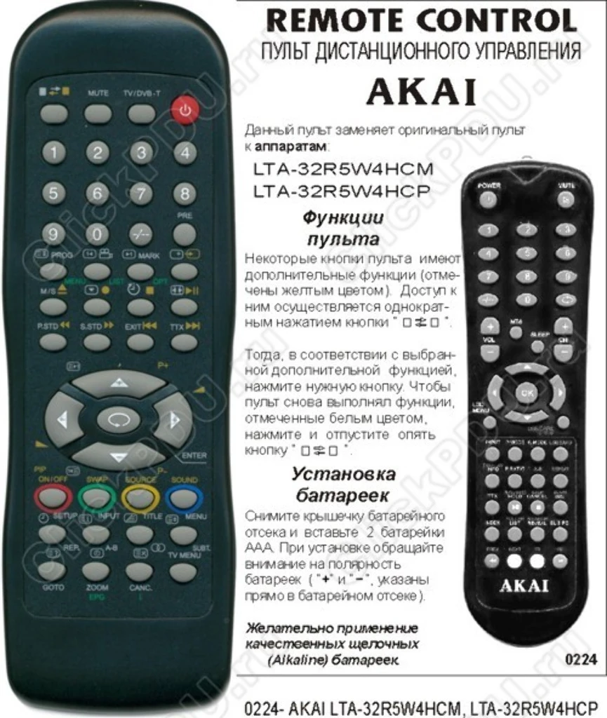 Пульт Akai LTA-32R5W4HCP для телевизора Akai