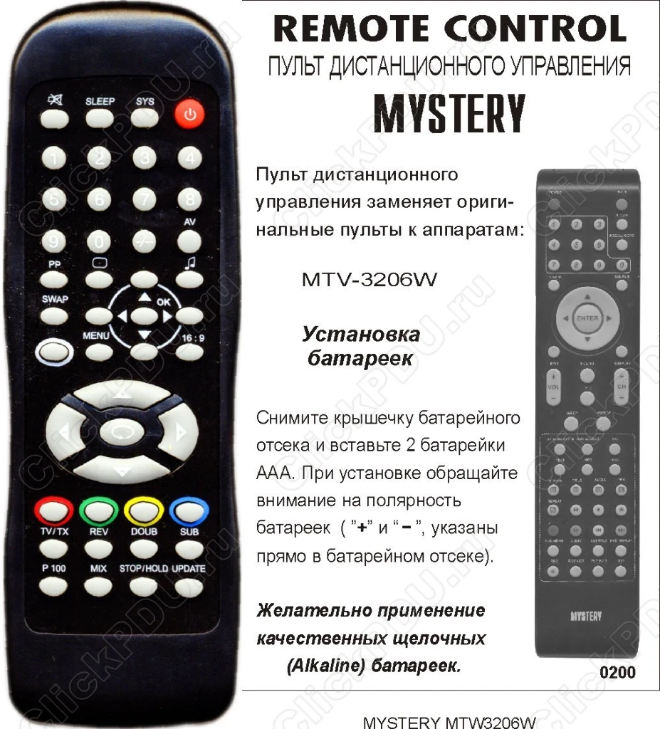 Пульт Mystery MTV-770, MTV-970 для телевизора Mystery