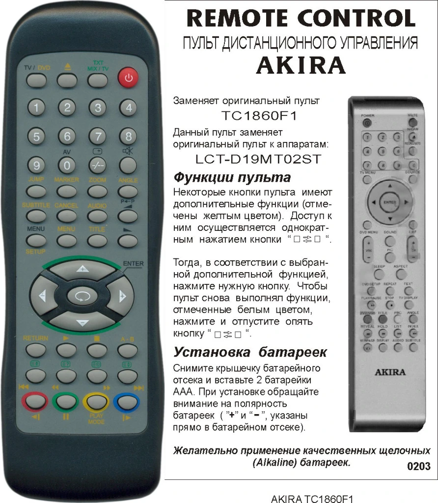 Akira IR-03B TV LCTD22V82ST/ (арт. 0210-)