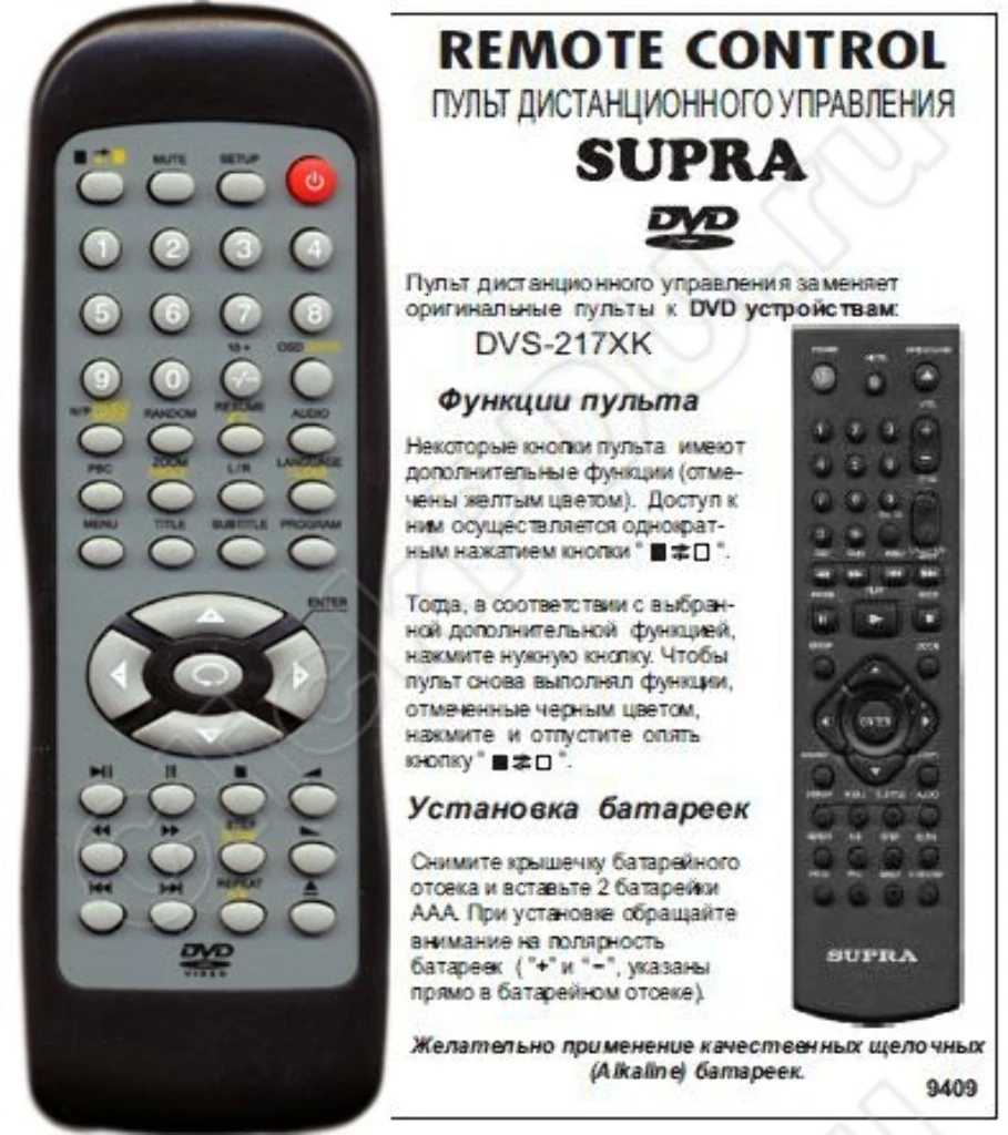 Пульт Supra DVS-109UX VAR3 оригинальный