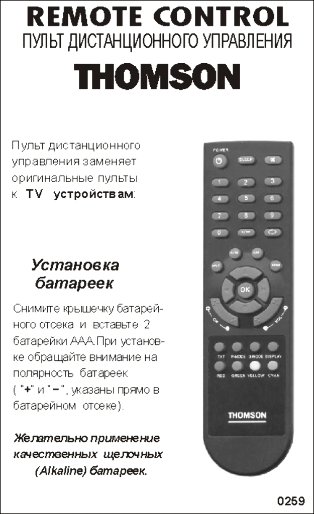 Аналог пульта Thomson T15E01MT TV для телевизора