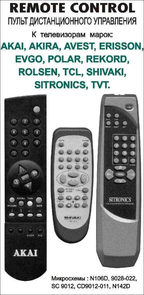 Пульт Polar /Sitronics RC-2201/2909 для телевизора Polar