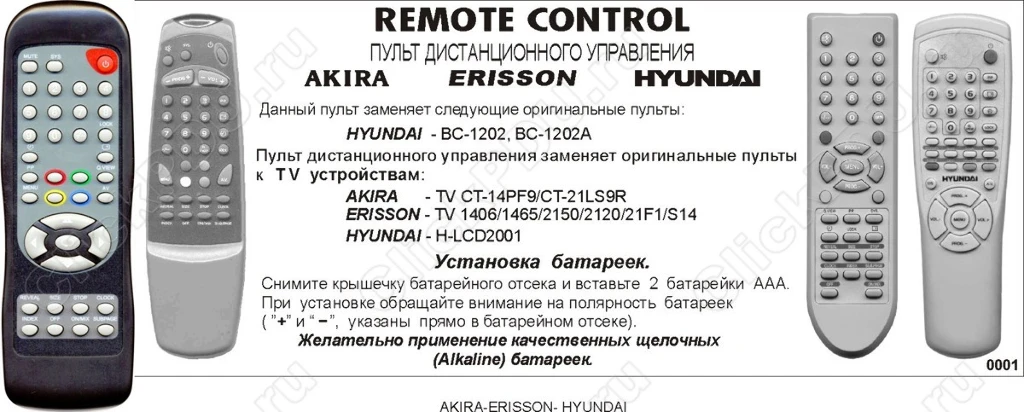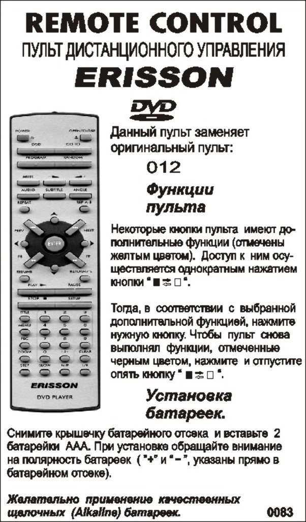 Пульт Erisson CX-501 DVD для DVD плеера Erisson