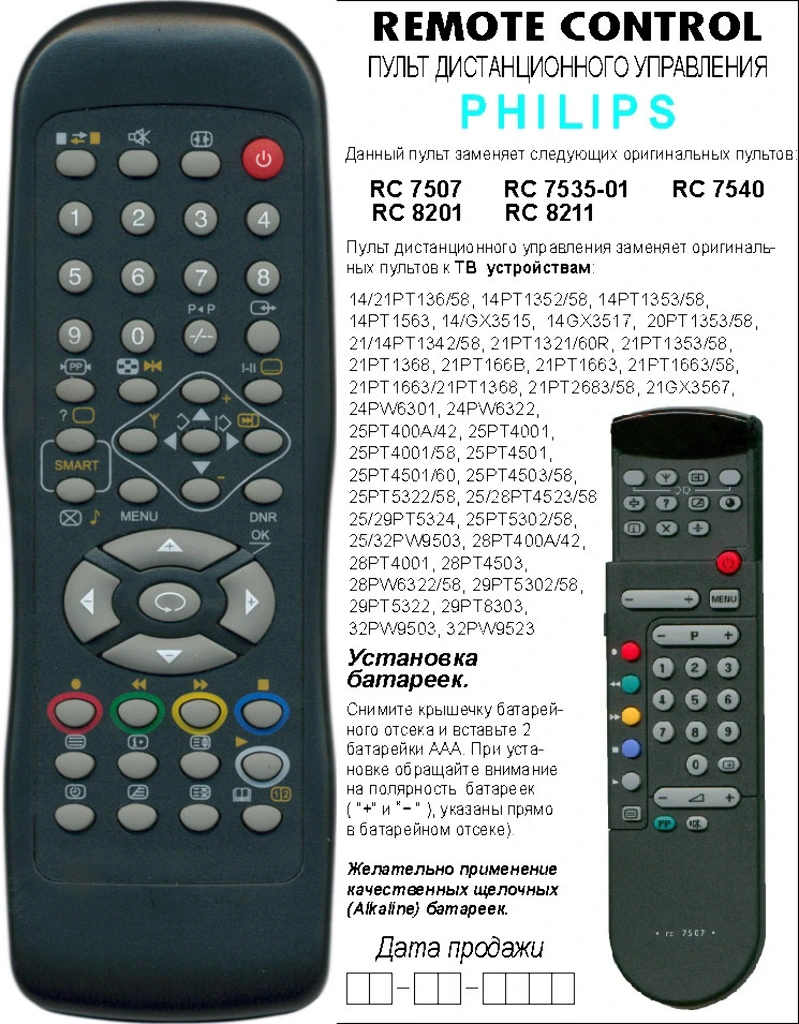 Пульт Philips RC-7507/01 для телевизора Philips