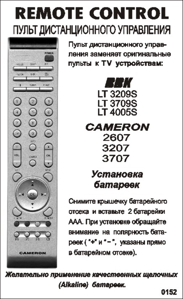 BBK /Cameron LT3209/3709/4005 (арт. 0152-08)