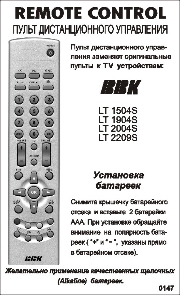 Аналог пульта BBK LT1504 ЖК телевизор для телевизора