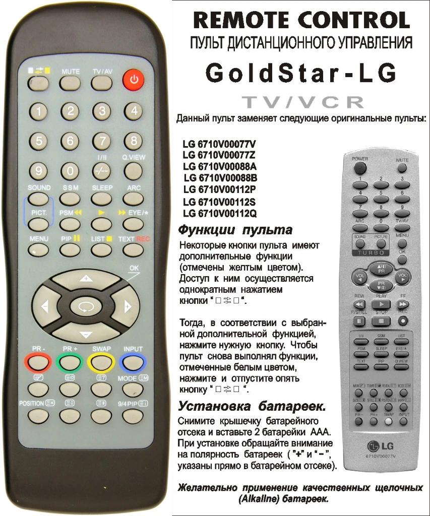 Аналог пульта LG 6710V00077V/77Z/88B/112P для телевизора