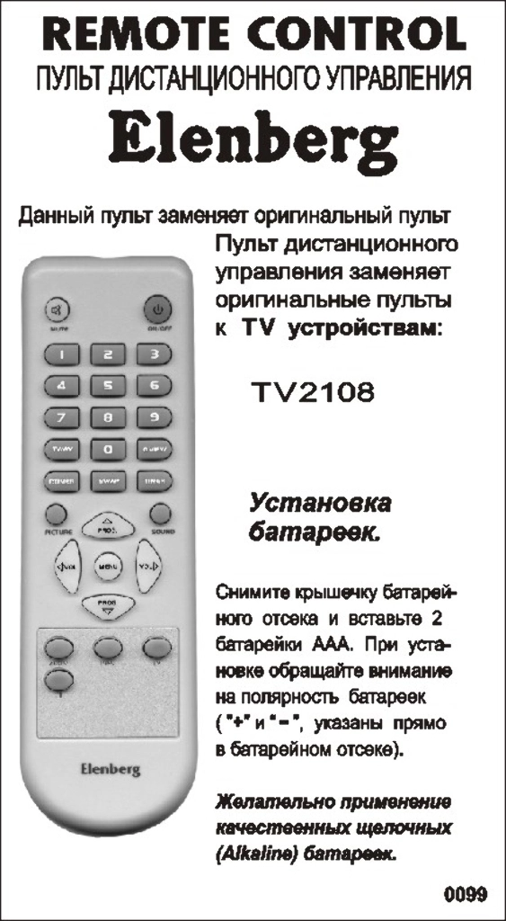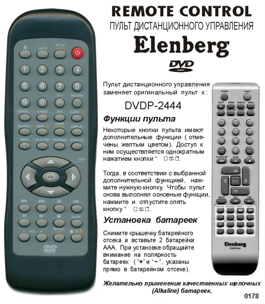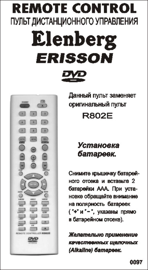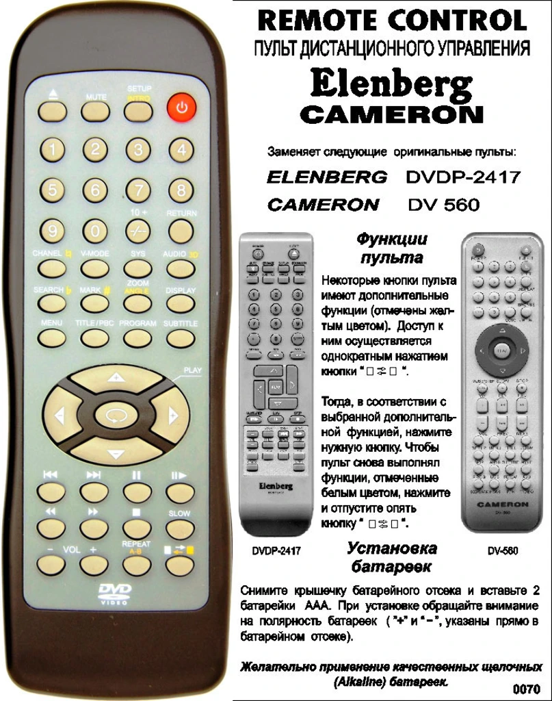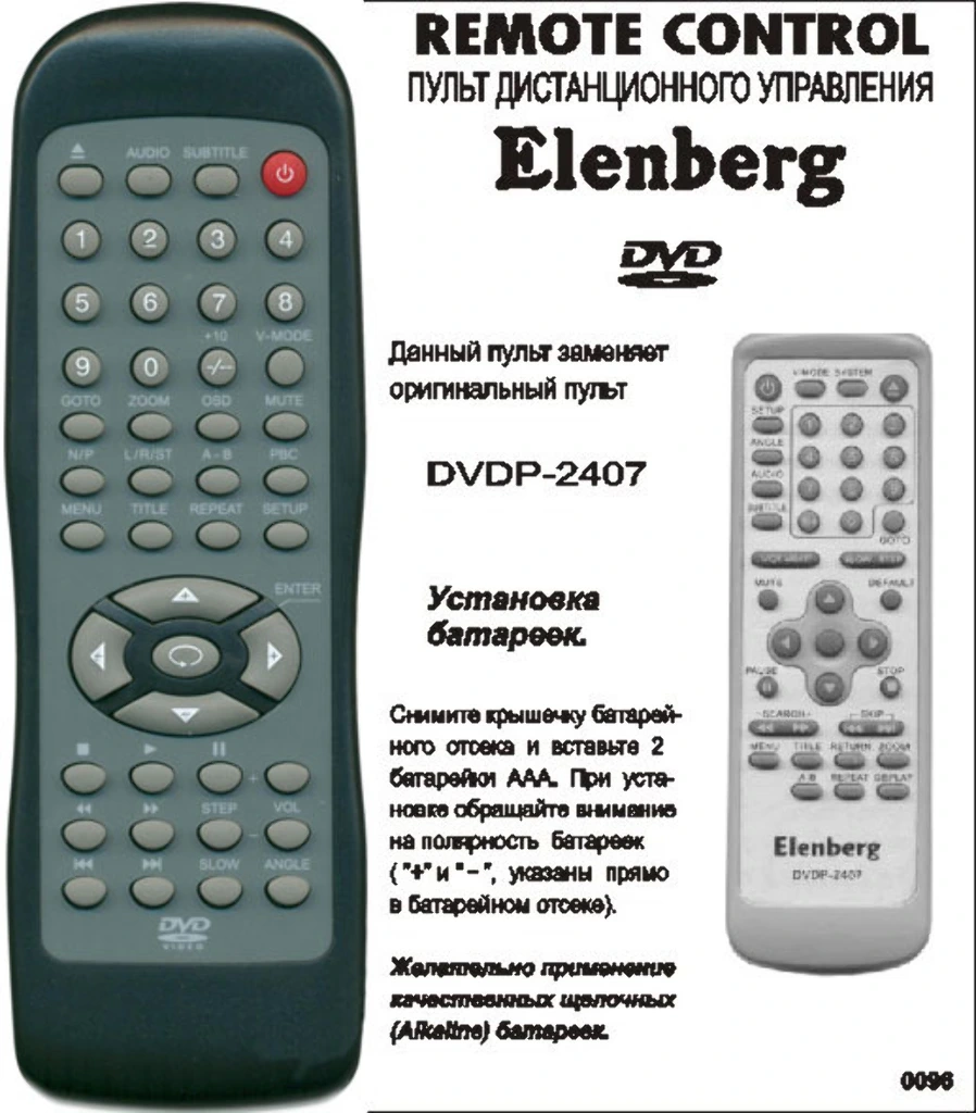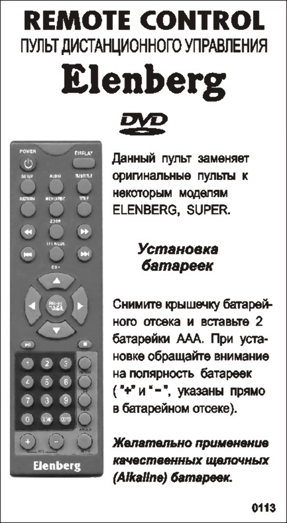 Аналог пульта Elenberg 2407 bol для DVD плеера