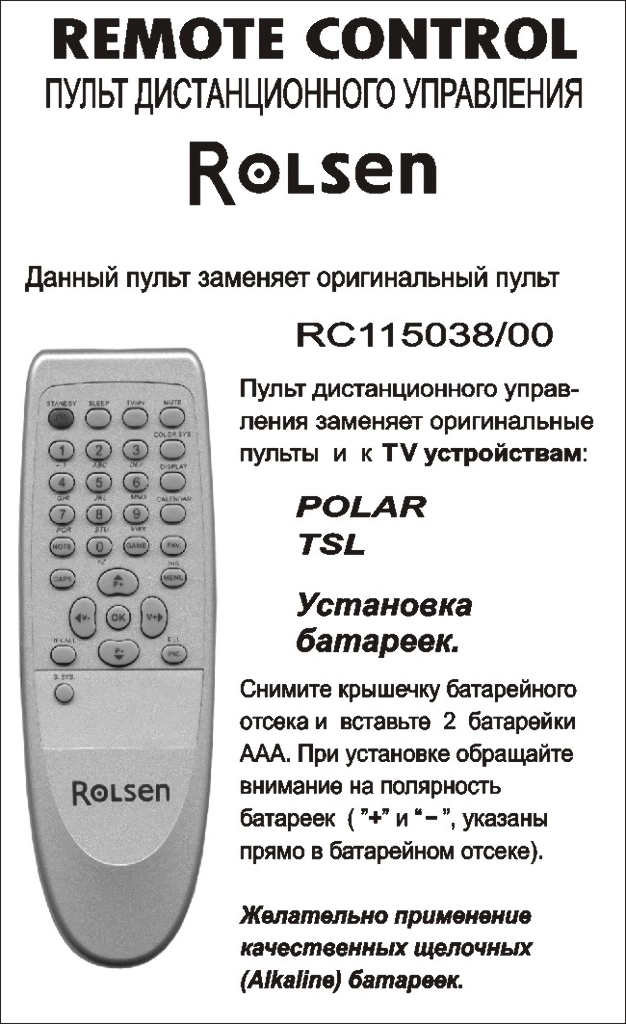 Пульт Rolsen AKAI,TCL, RC - 11553038 для телевизора Rolsen