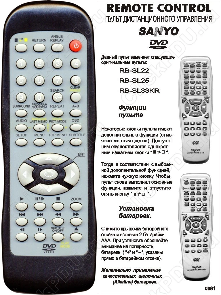 SANYO DVD RB-SL22/25/33KR (арт. 0091-08)