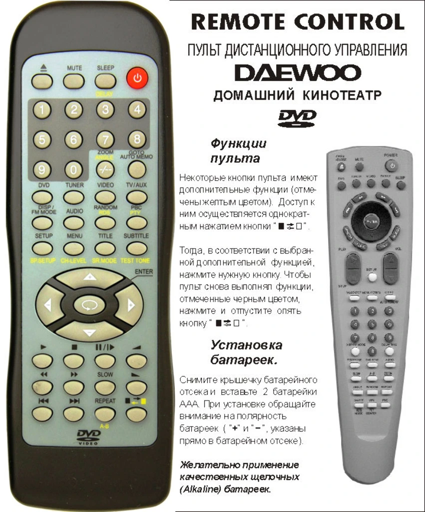 Пульт Daewoo ПОРТАТИВНЫЙ DVD для DVD плеера Daewoo