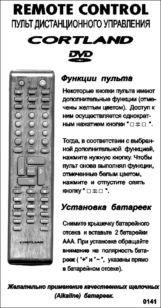 Пульт Cortland DVP-737 для DVD плеера Cortland