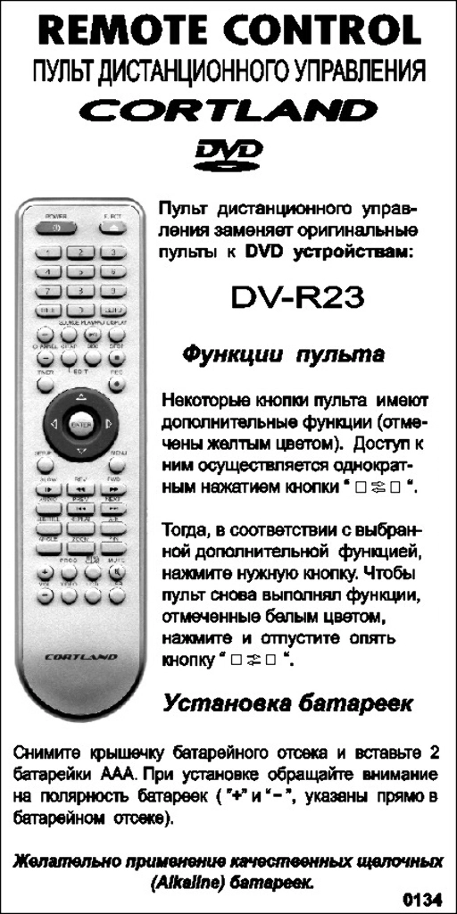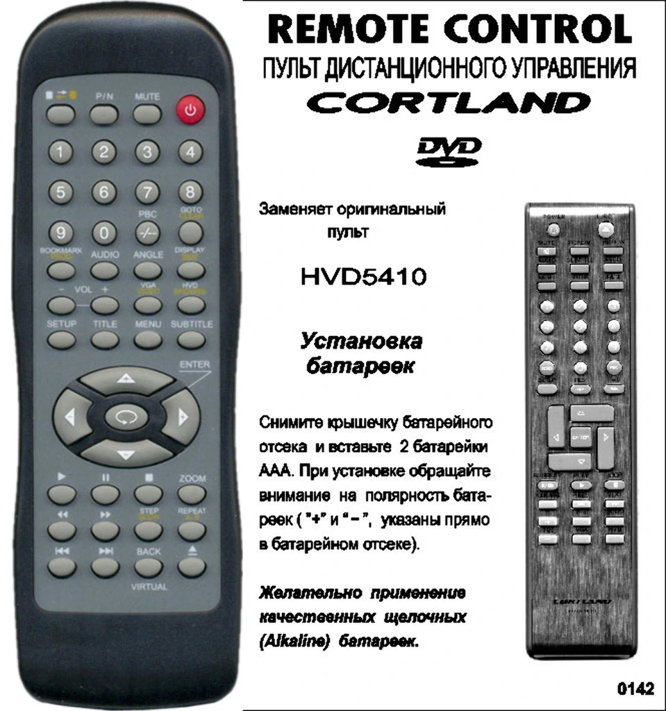 Аналог пульта Cortland HVD-5410 bol для DVD плеера