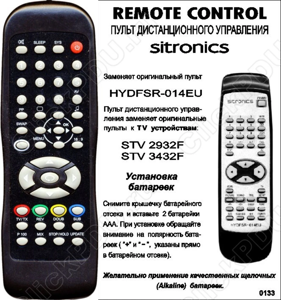 Пульт Sitronics HYDFSR-0054EUB(HYDFSR-014EU) для телевизора Sitronics