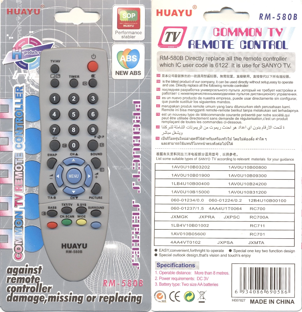 Универсальный пульт Huayu для Sanyo RM-580B+1