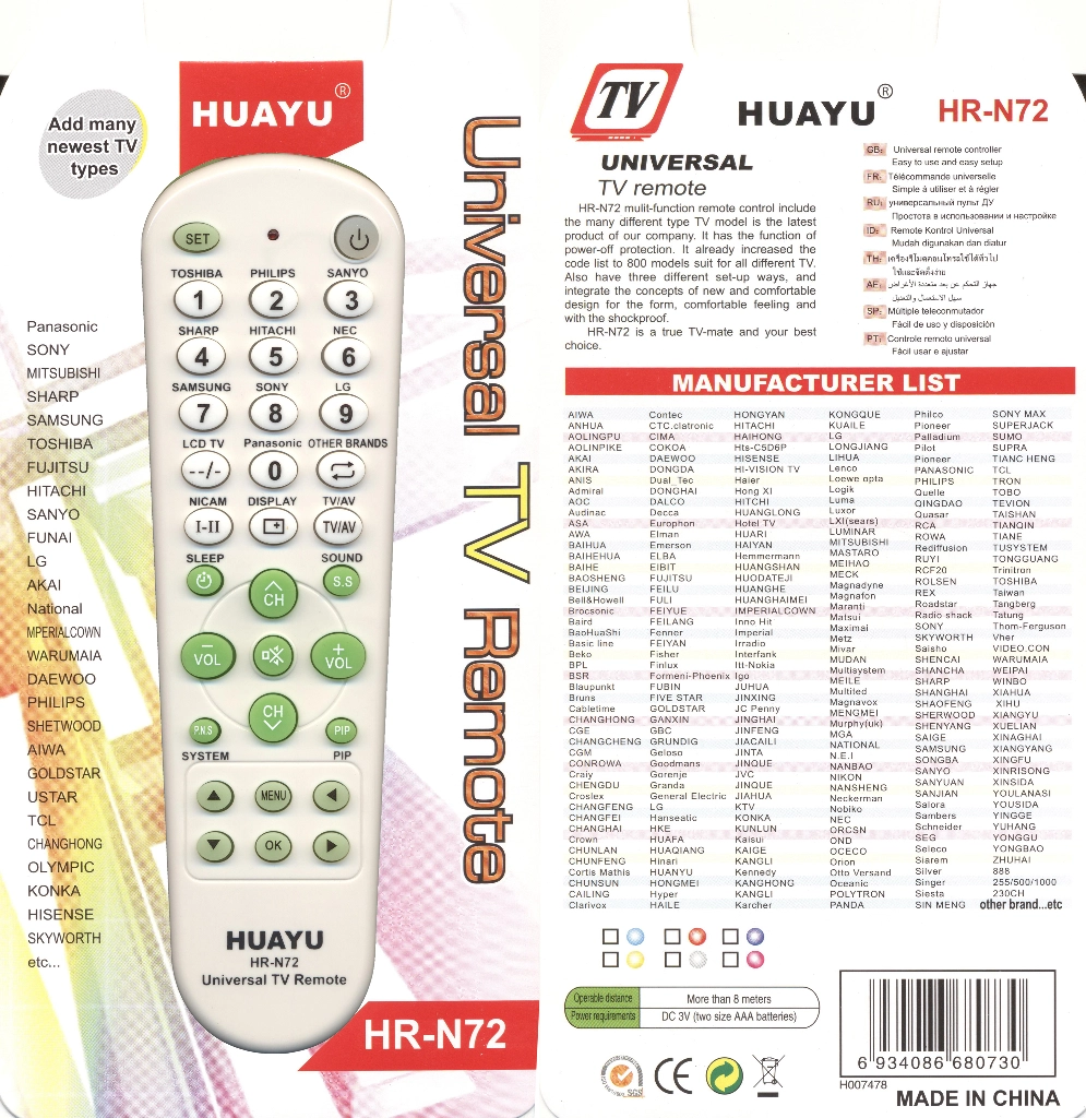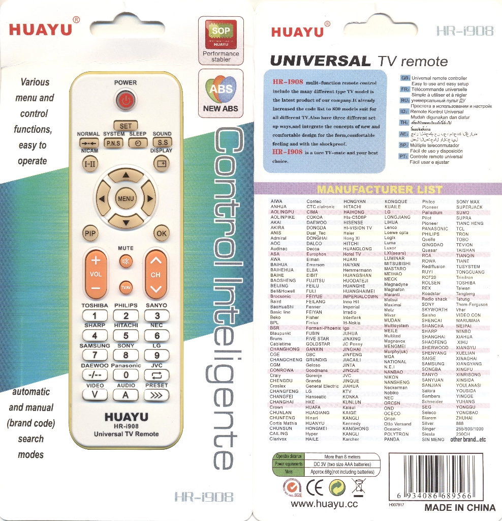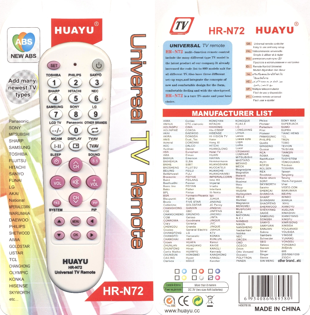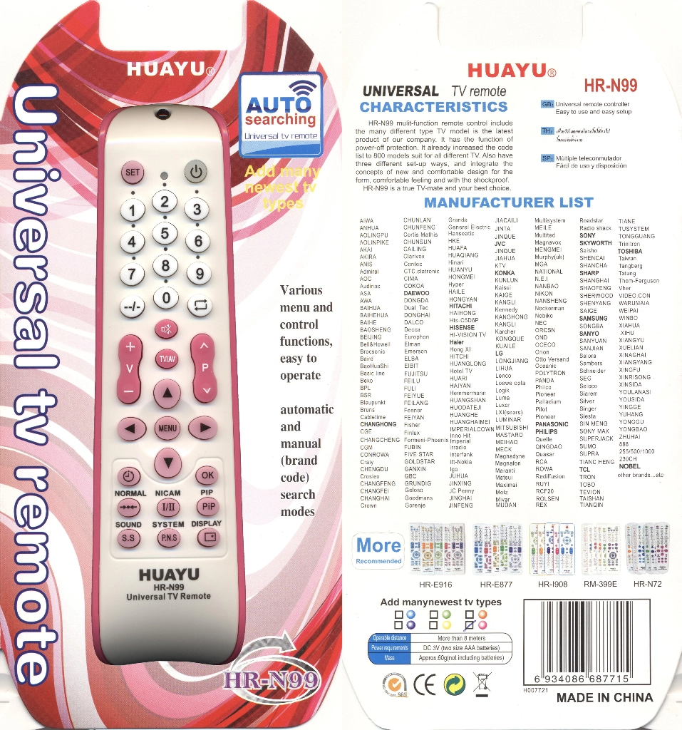 Универсальный пульт Huayu IHANDY AUN0449(0499)