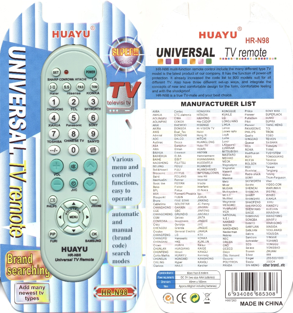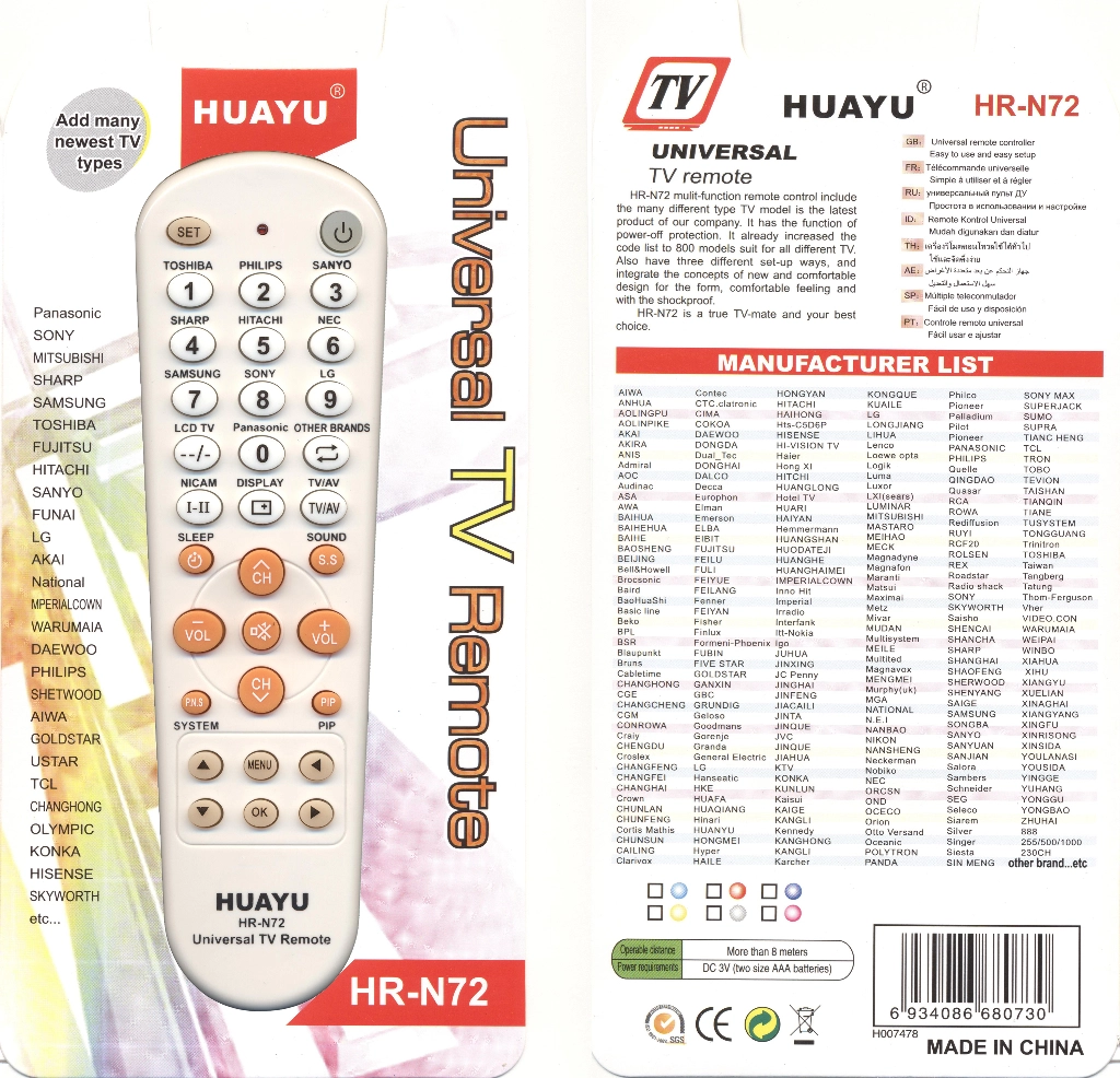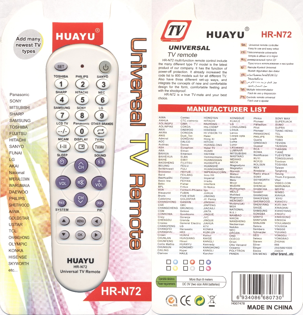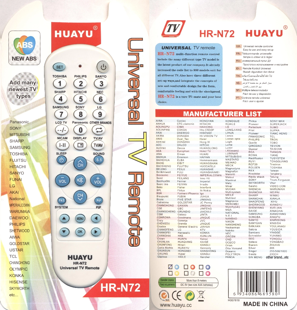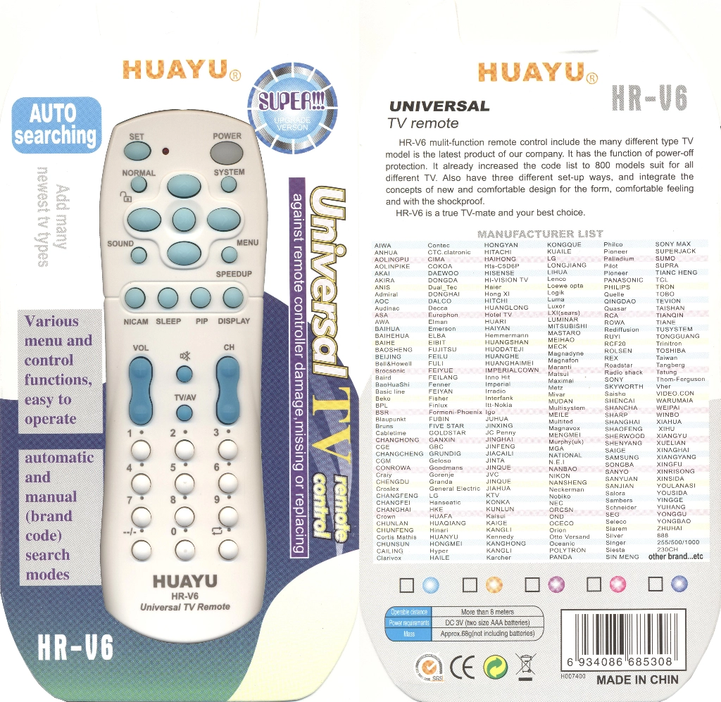 Универсальный пульт Huayu IHANDY AUN0449(0499)