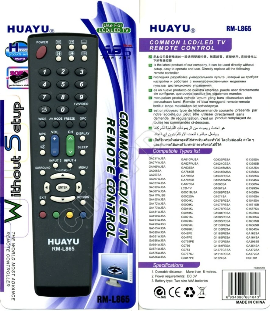Пульт Huayu 11UK-12 как ориг для телевизора Sharp