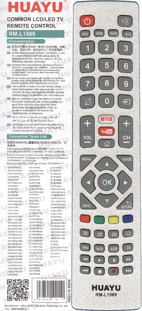 Пульт Huayu G0764PESA (ic) для телевизора Sharp