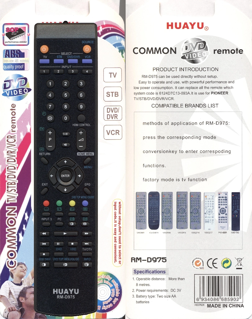 Универсальный пульт Huayu для Pioneer RM-D761 DVD