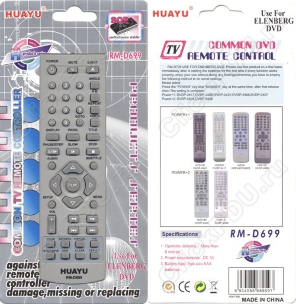 Универсальный пульт Huayu для Elenberg RM-D699