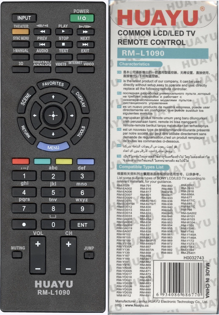 Универсальный пульт Huayu для Sony RM-L1090