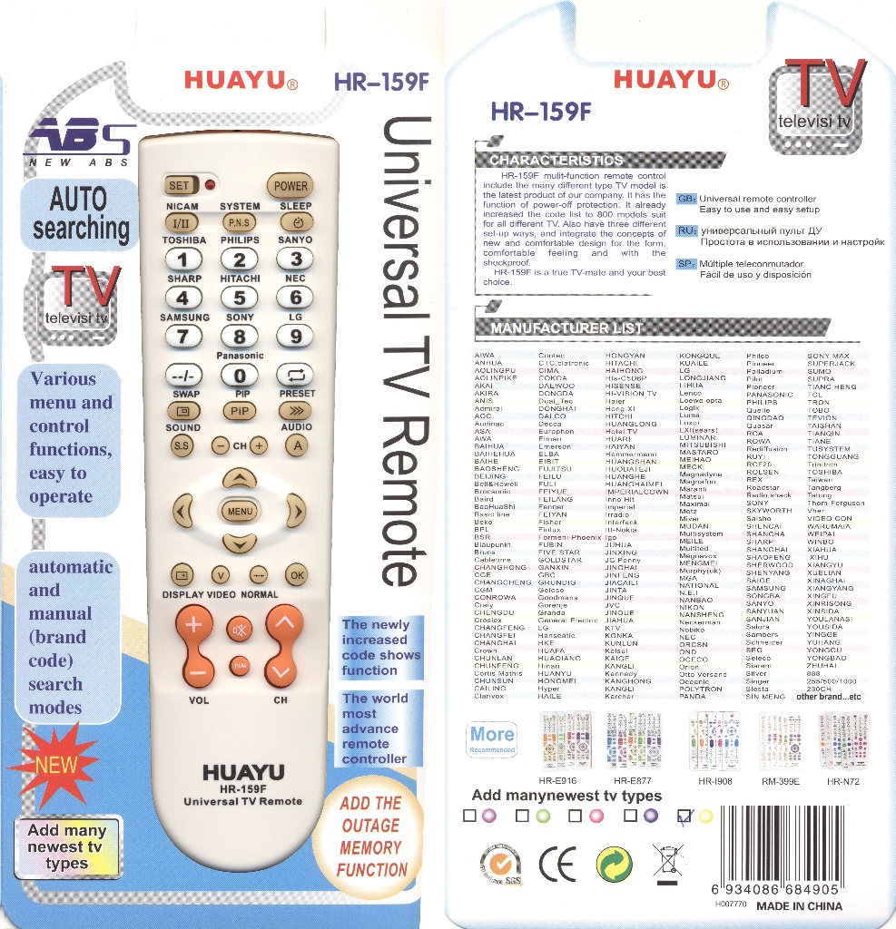 Универсальный пульт Huayu H-16E для DAEWOO TV