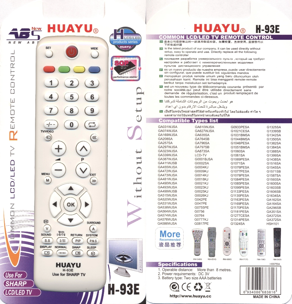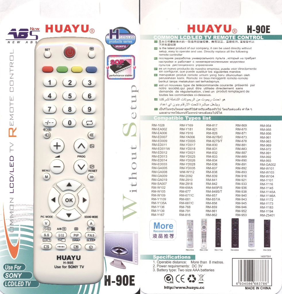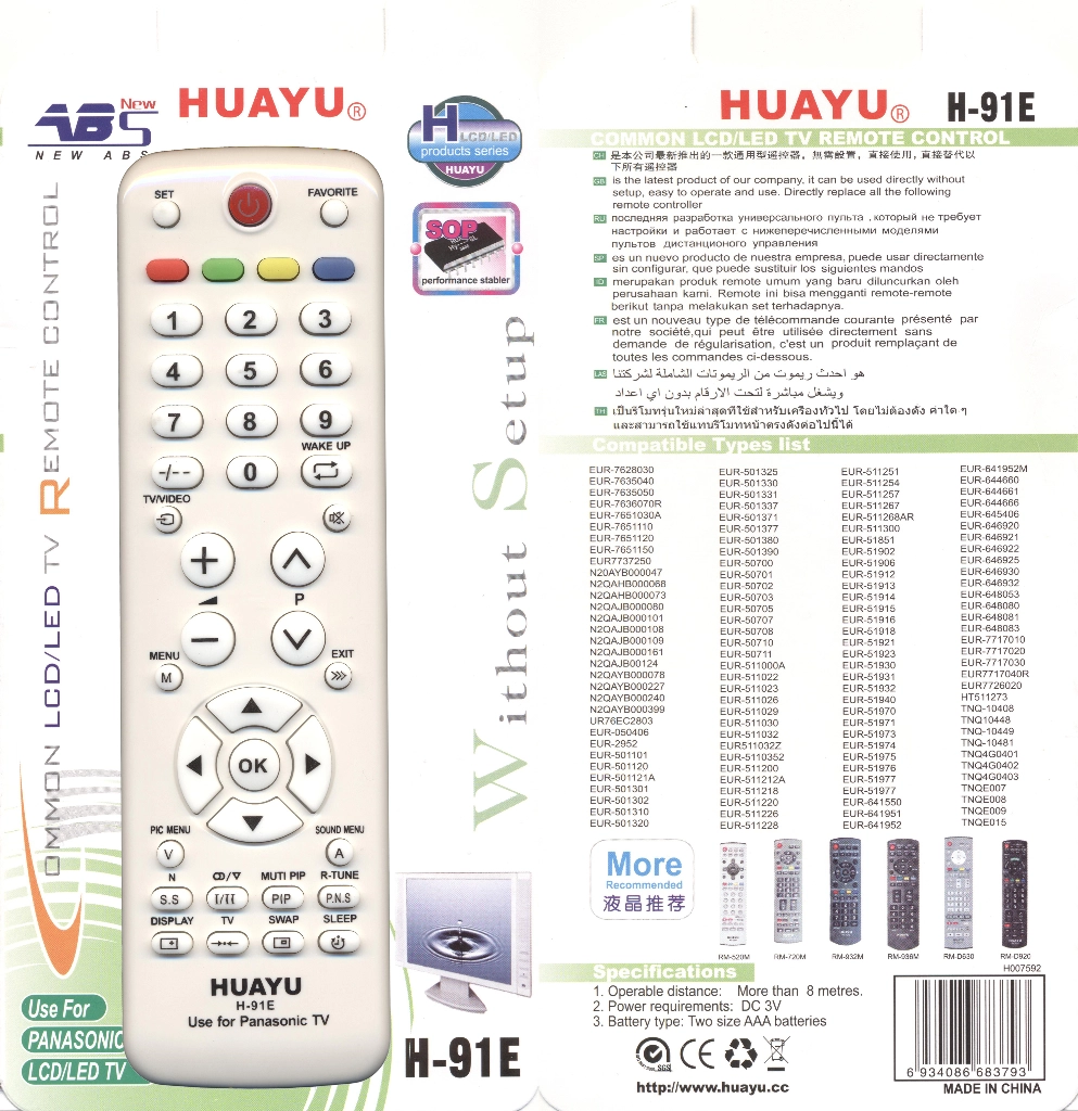 Универсальный пульт Huayu H-91E для PANASONIC TV