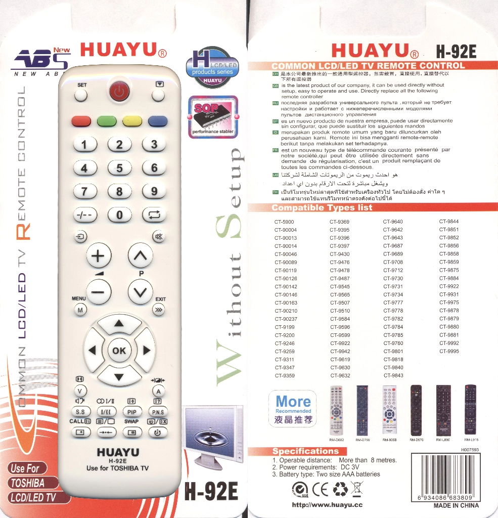 Универсальный пульт Huayu H-92E для TOSHIBA TV