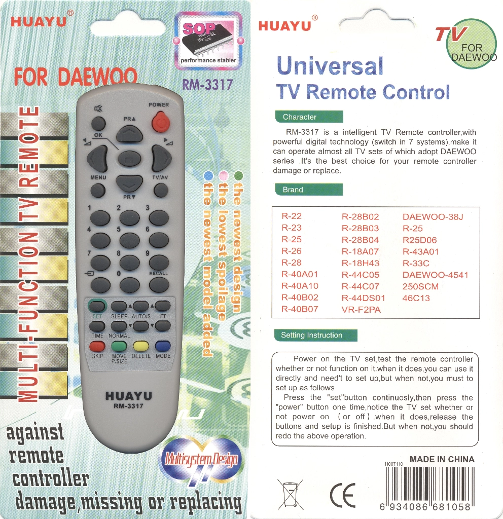 Универсальный пульт Huayu для Daewoo TV RM-515DC