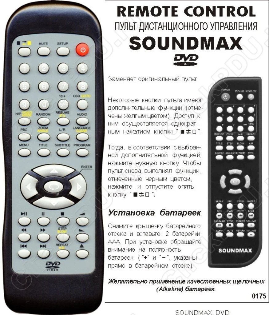Аналог пульта Soundmax Soundmax DVD как Elenberg 2402 для DVD плеера