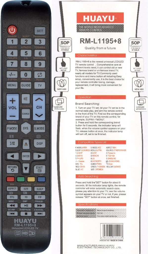 Купить "Универсальный пульт Huayu RM-L1195+8 black"
