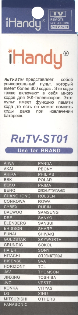 Универсальный пульт IHANDY RuTV-ST01 для телевизоров различных марок!