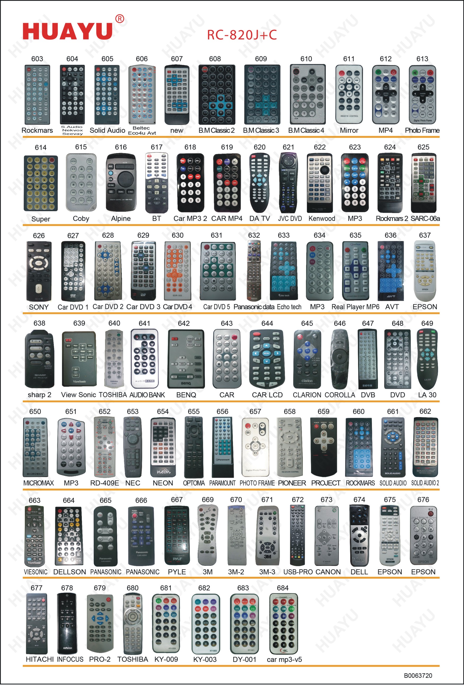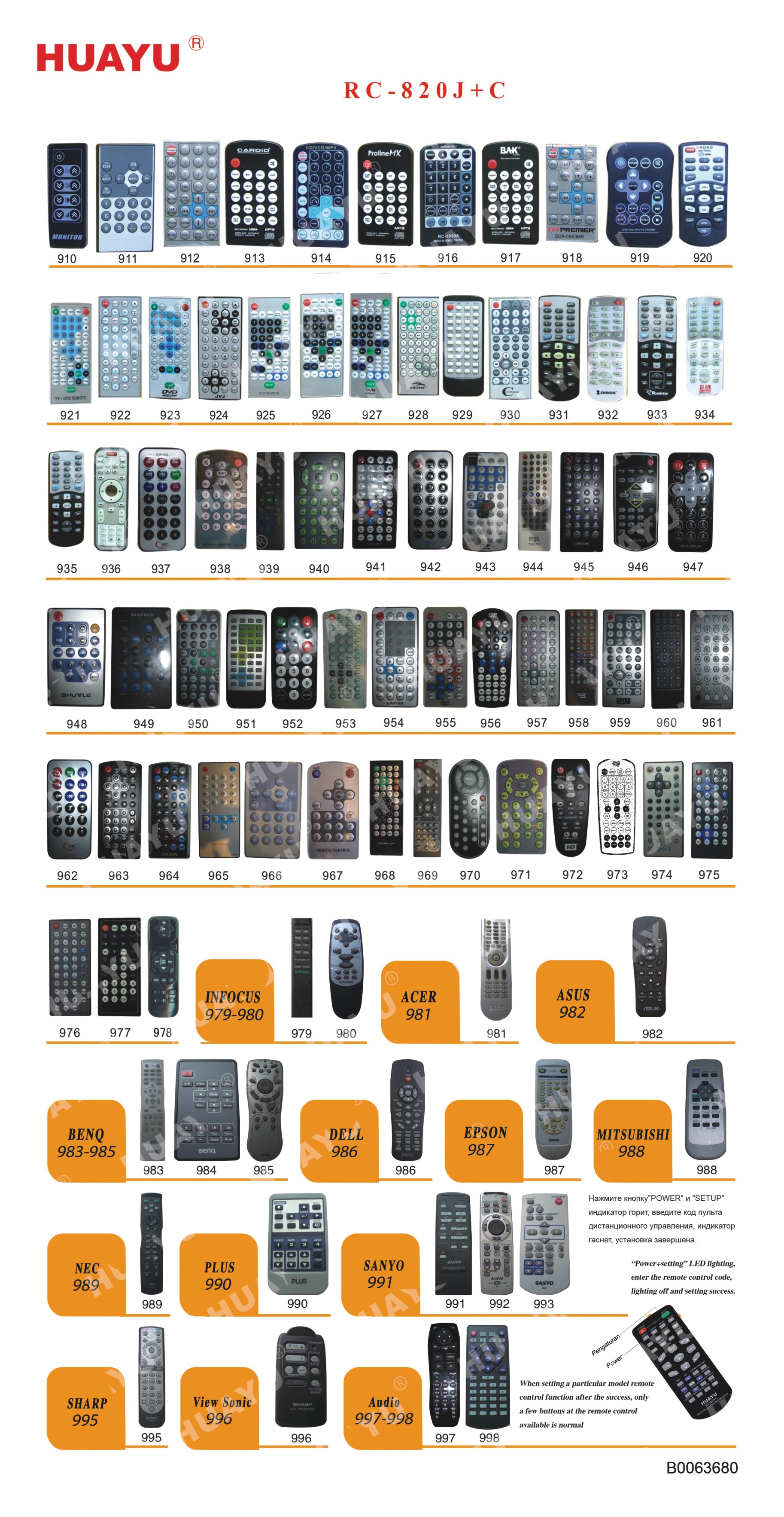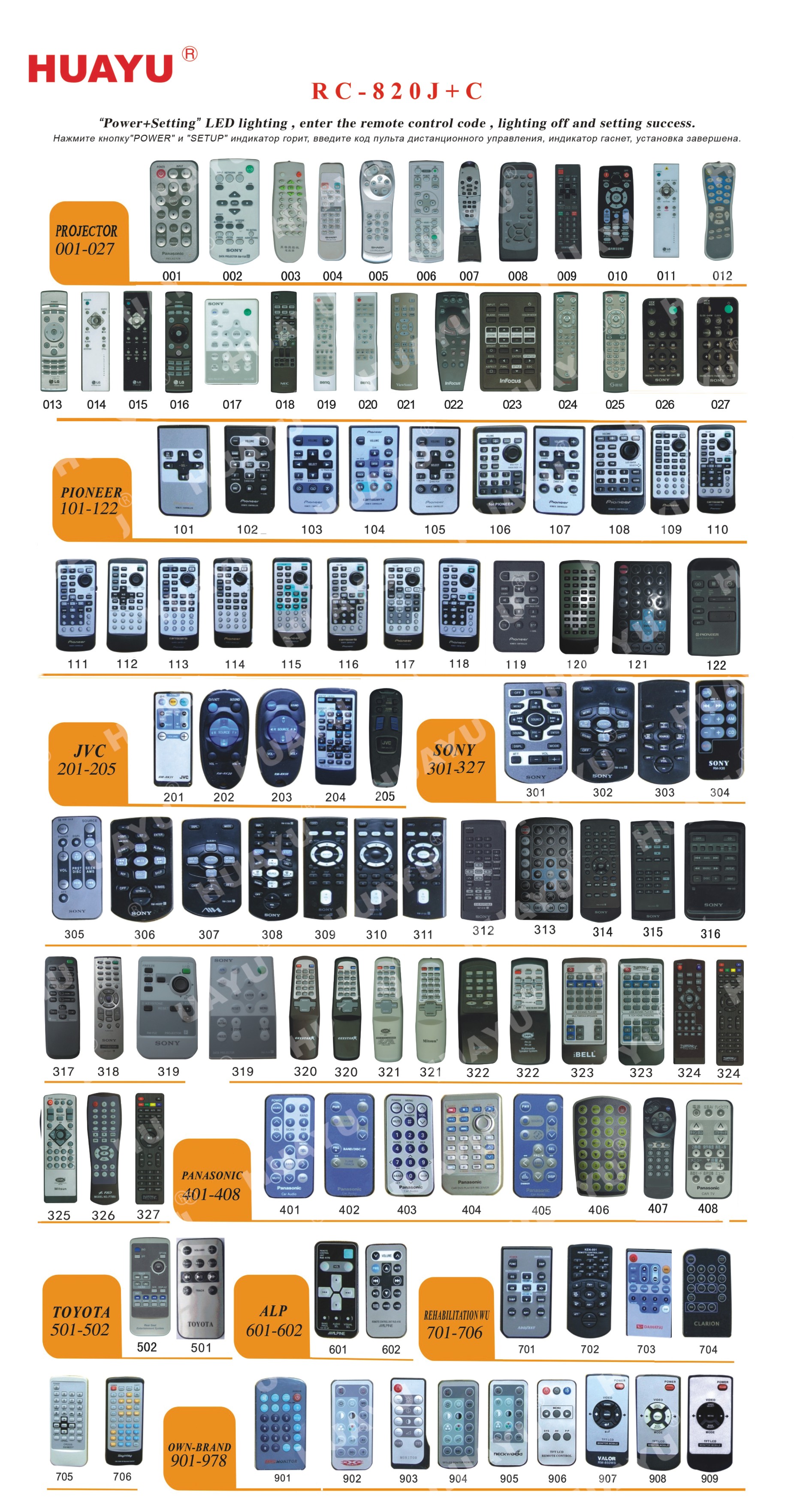 Универсальный пульт HUAYU RC-820J+D для автомагнитол и проекторов различных марок.