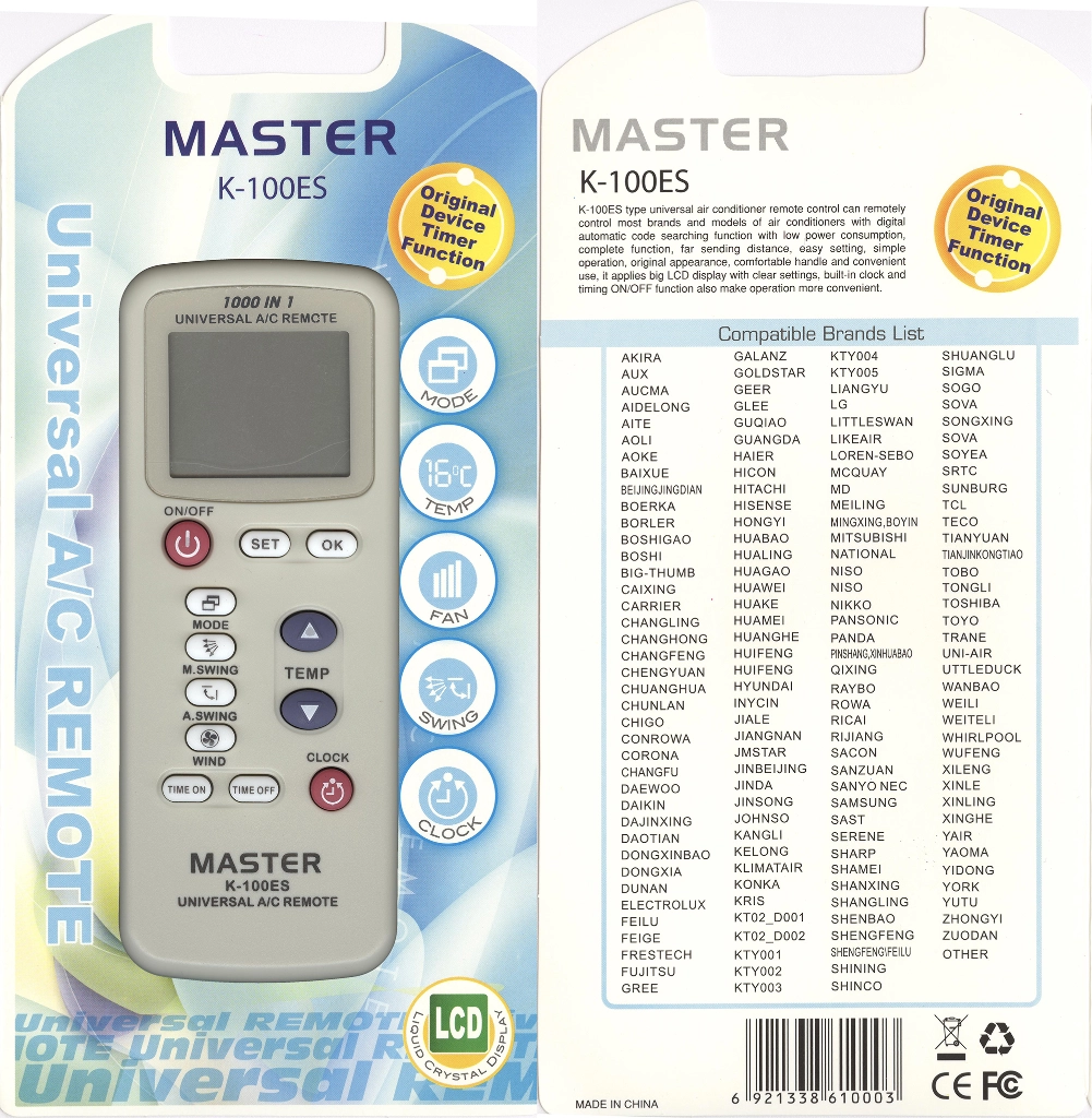 Пульт содержит 1000 кодов и подходит для большинства кондиционеров поставляемых на наш рынок, даже если бренд не указан в таблице. Очень легко настраивается с помощью ввода или автопоиска кода, инструкция на русском языке в комплекте.