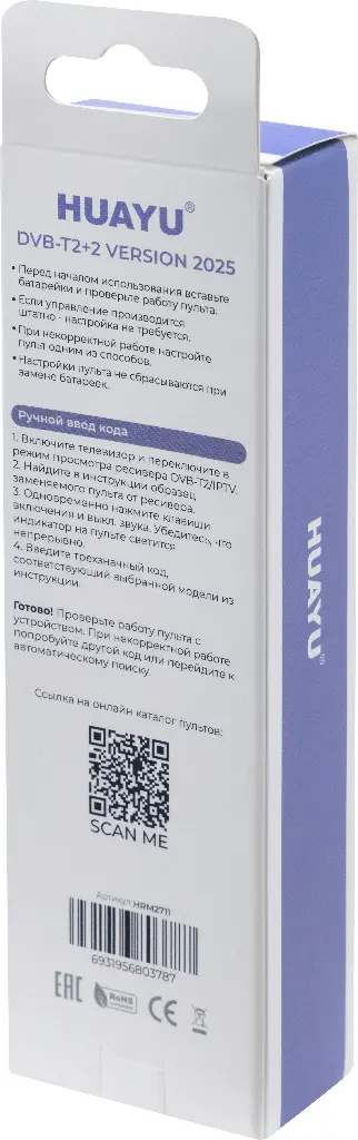 Все это в совокупности с современной микроэлектроникой дает пульту бренда HUAYU надежность и долговечность, что подтверждается международными сертификатами