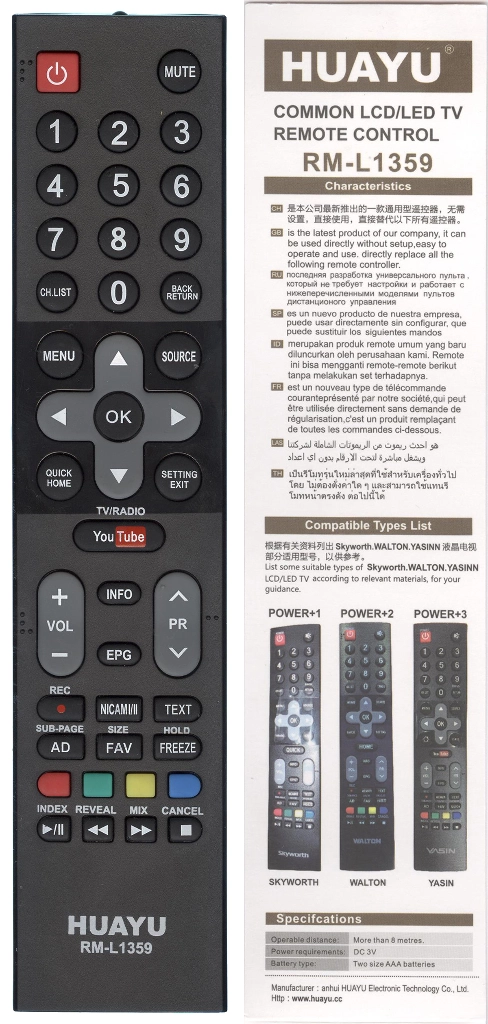 Все это в совокупности с современной микроэлектроникой дает пульту бренда HUAYU надежность и долговечность
