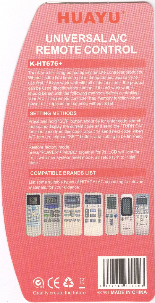 Универсальный пульт Huayu K-HT676 для кондиционеров HITACHI