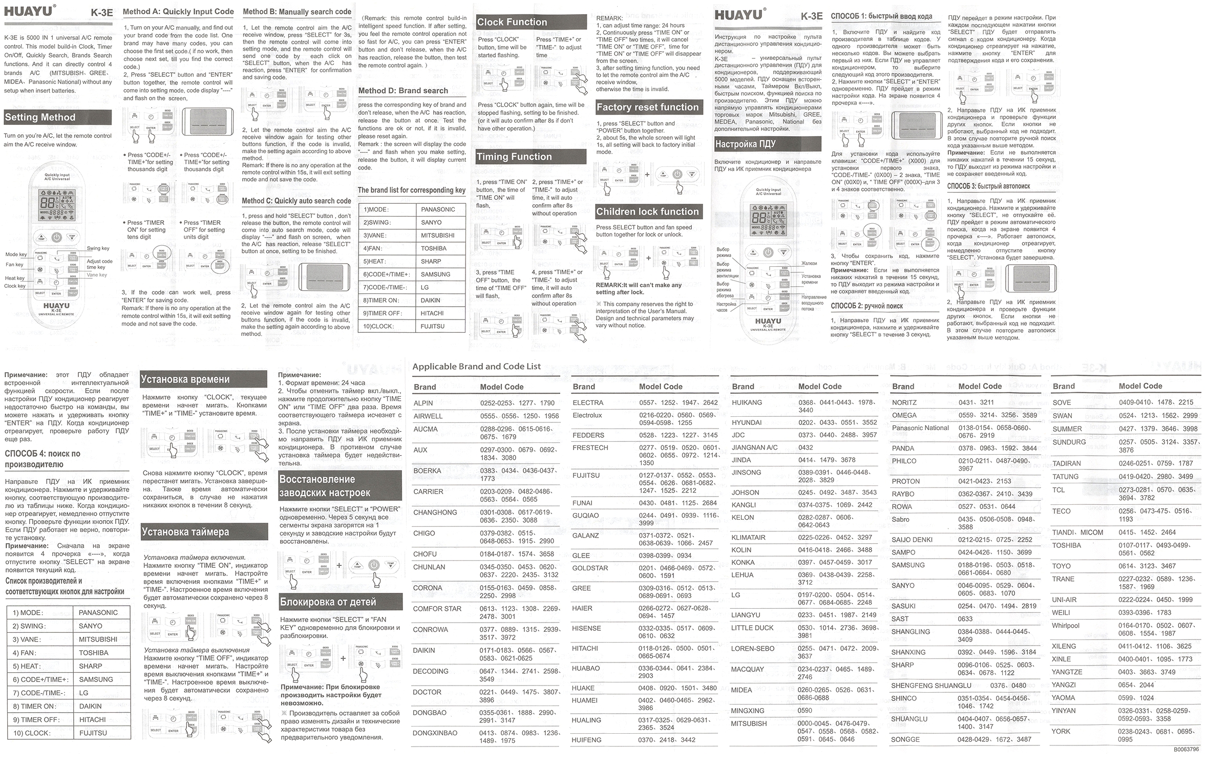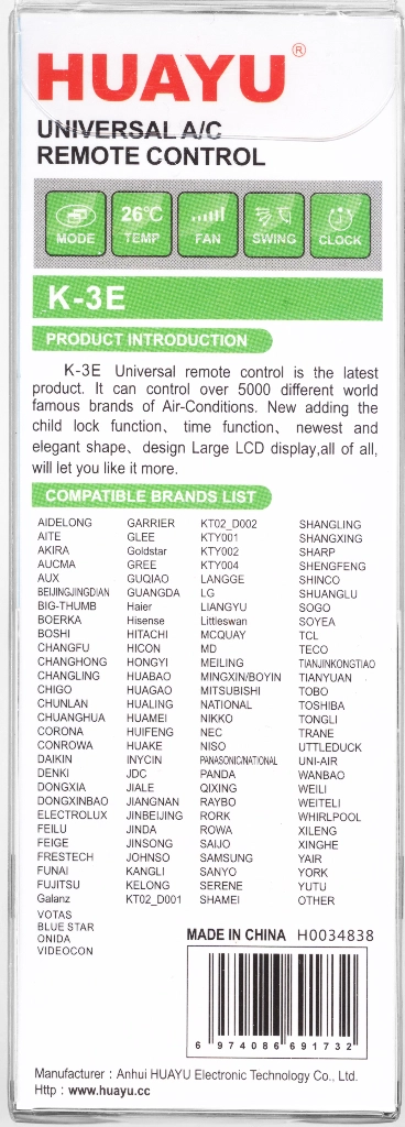 Универсальный пульт Huayu K-3E для кондиционеров и сплит-систем!
